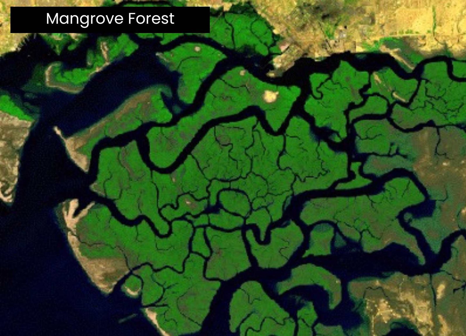 Different forests have varying growing conditions from higher elevation in north to low-lying coastal mangrove forest visible from satellite view.